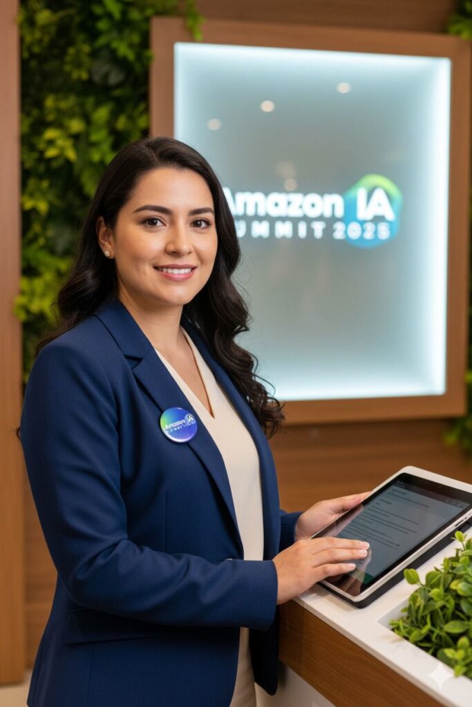 As inscrições para o Amazon IA Summit 2025 estão abertas, e existe alguém ajudando no processo de confirmação das inscrições e atendimento ao público: A Ayla, a mais nova funcionária do Grupo Digital.