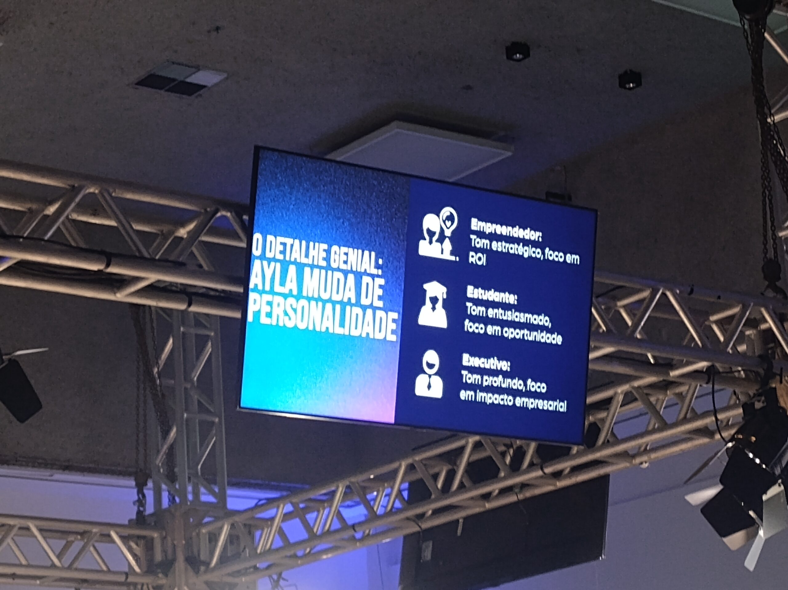 O case de sucesso apresentado foi Ayla, a assistente virtual oficial responsável por vender ingressos e atender milhares de participantes interessados no evento.