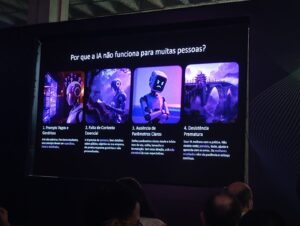 Tornando o exemplo mais prático, a profissional mostrou aos presentes por que as pessoas desistem do uso da IA, e com isso perdem a oportunidade de desenvolver o conhecimento. Ela exemplifica com o Chat GPT pode cruzar informações financeiras especificas, como fluxos de caixa, e construir um relatório completo em forma de planilha, e que ainda é possível transformar essa mesma planilha em um documento de PDF, material de vídeo e até mesmo um podcast em formato áudio.