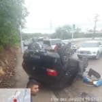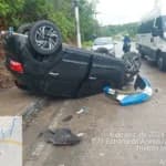 Acidente entre veículos provoca capotamento no Distrito Industrial, em Manaus