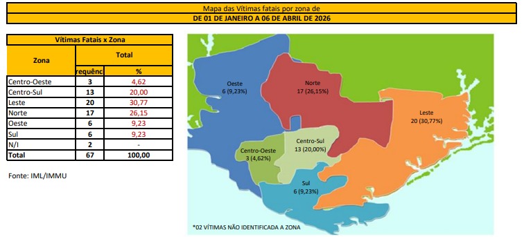 Relatório do IMMU, divulgado em 6 de abril, aponta que, dos 67 óbitos registrados até aquela data, os motociclistas lideram as estatísticas, com 34 mortes (pouco mais de 50% do total). Em seguida vêm pedestres, com 18 vítimas. Os dados também revelam que a maioria dos acidentes fatais ocorre por colisão (24 casos), seguida por atropelamento (18) e capotamento (10).
