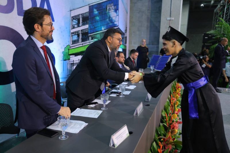 “Talvez, para mim e para minha família tenha sido a primeira oportunidade de ver o mundo com outras cores. A educação de tempo integral transformou a minha vida e abriu portas. Estar aqui hoje, celebrando com os formandos e suas famílias, é um momento de muita emoção. Quero parabenizar o governador Wilson Lima por, desde 2023, iniciar essa parceria”, afirmou.