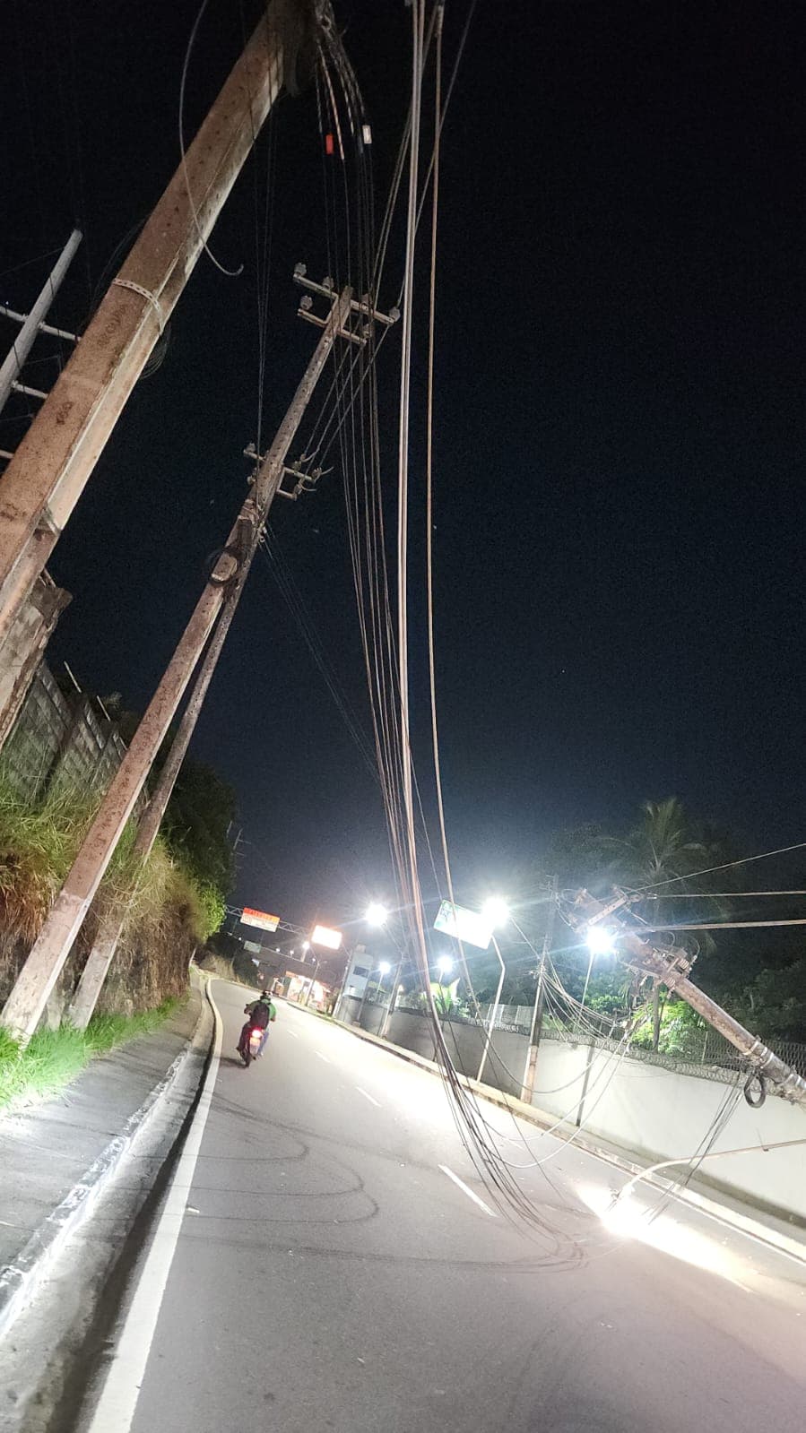 O poste derrubado ficou atravessado sobre a via, bloqueando totalmente a passagem de veículos. Agentes de trânsito foram acionados e orientaram os motoristas a fazer um retorno próximo e a evitarem a área até a liberação da pista.