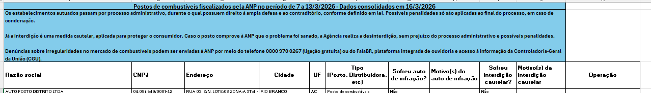 A fiscalização também integrou a operação nacional “Tô de Olho no Abastecimento Seguro” e “Tô de Olho na Medida Certa”, realizada entre os dias 10 e 12 de março. A iniciativa foi coordenada pelo Ministério do Desenvolvimento, Indústria, Comércio e Serviços, com apoio da Secretaria Nacional do Consumidor e parceria do Instituto Nacional de Metrologia, Qualidade e Tecnologia. Durante essa etapa, 123 postos foram fiscalizados em nove estados e no Distrito Federal, resultando em 32 autos de infração.