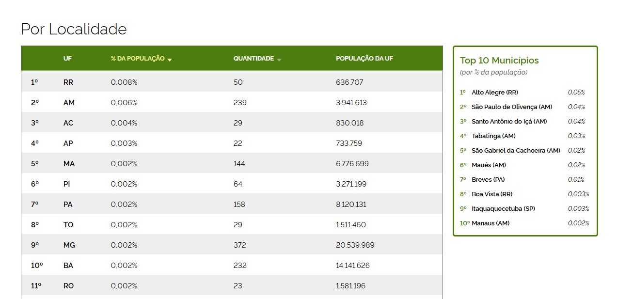 São Paulo de Olivença lidera entre os amazonenses e figura na segunda colocação nacional, seguida de Santo Antônio do Içá, Tabatinga, São Gabriel da Cachoeira, Maués e a capital, Manaus, que completa a lista na décima posição.