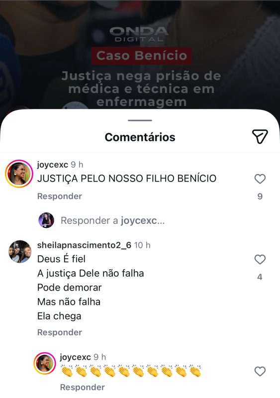 Joyce Xavier e Bruno Freitas, pais de Benício Xavier, voltaram a pedir justiça após a Justiça do Amazonas negar, pela segunda vez, o pedido de prisão preventiva da médica Juliana Brasil e da técnica de enfermagem Raiza Bentes, investigadas pela morte do menino, que ocorreu no dia 23 de novembro durante atendimento no Hospital Santa Júlia, em Manaus.