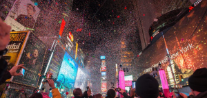 Nos Estados Unidos, o Réveillon é identificado com os grandes eventos públicos e festas privadas. O símbolo máximo é a descida da bola luminosa na Times Square, em Nova York, acompanhada por milhões de pessoas ao vivo e pela televisão.