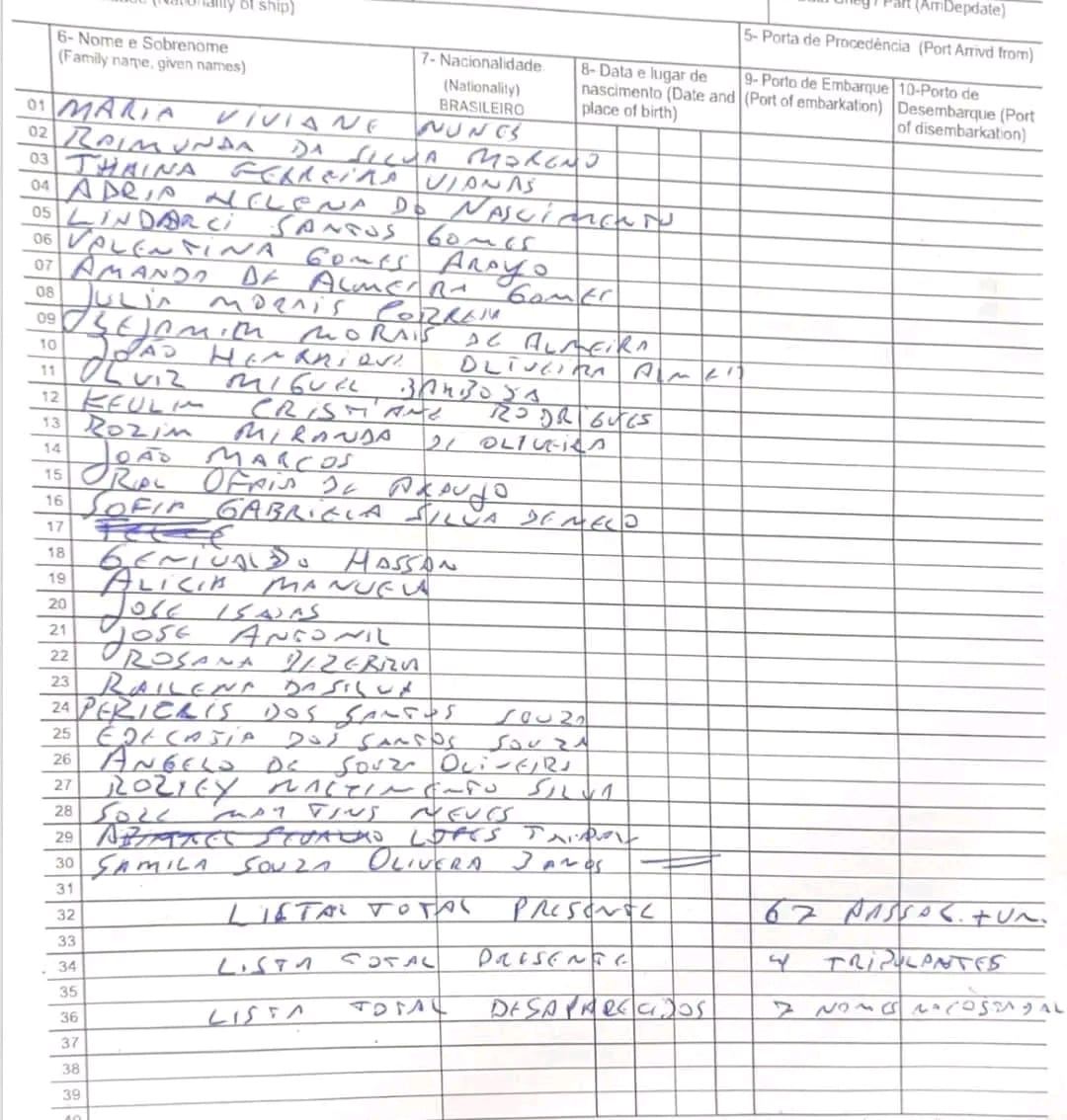 Após o acidente, uma lista com nomes de passageiros começou a circular e deve ajudar no trabalho de contagem oficial, além de auxiliar familiares e autoridades na identificação de possíveis desaparecidos. Até o momento, foi confirmada a morte de uma mulher e de uma criança, ainda não identificadas.