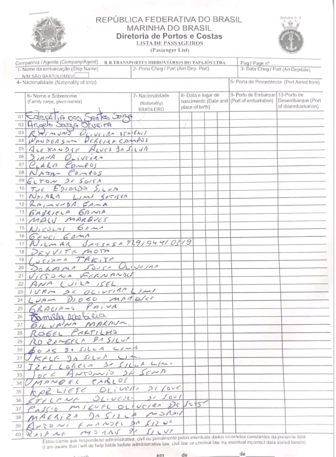 Veja lista de passageiros da lancha que naufragou no Rio Solimões