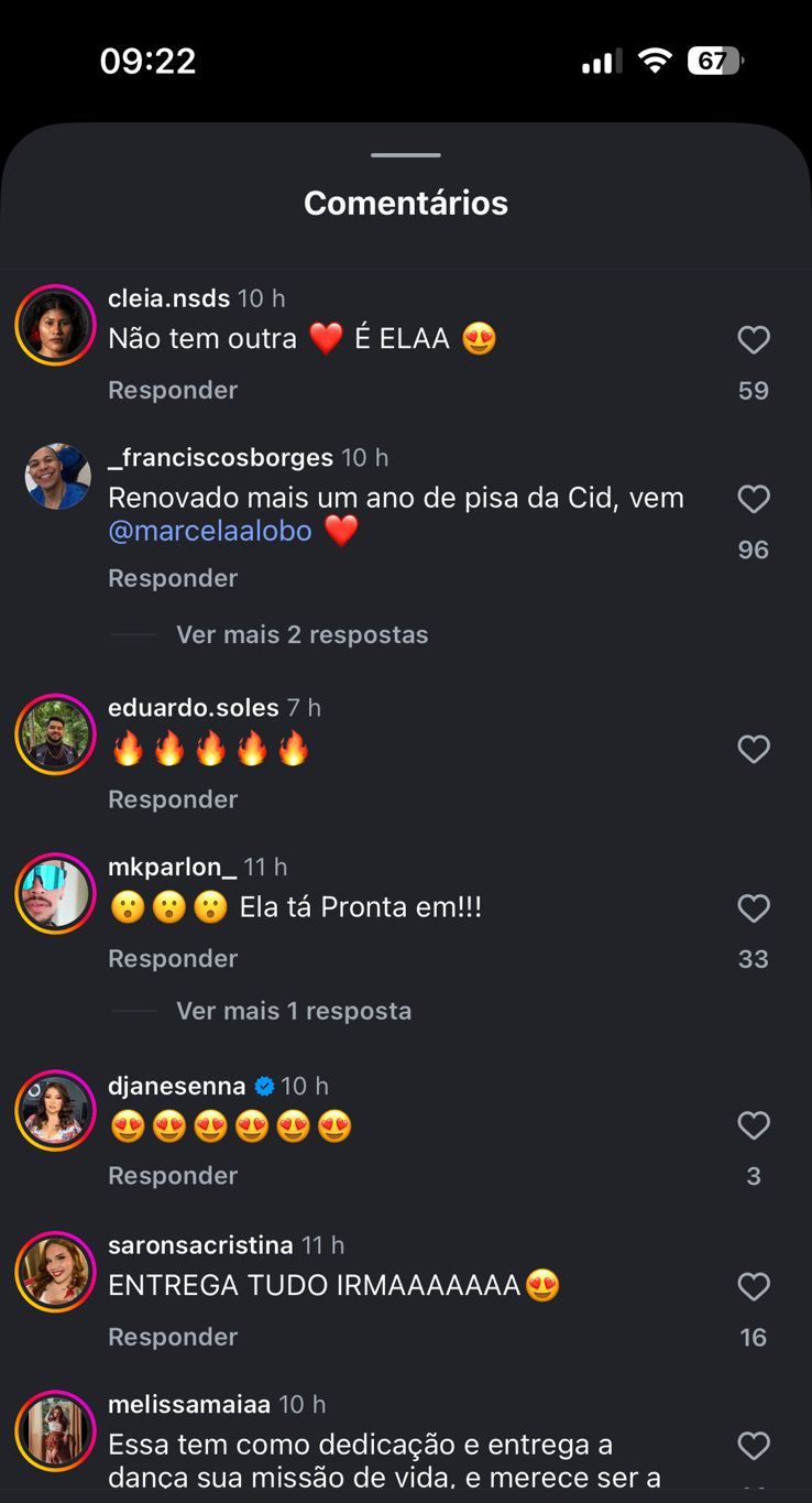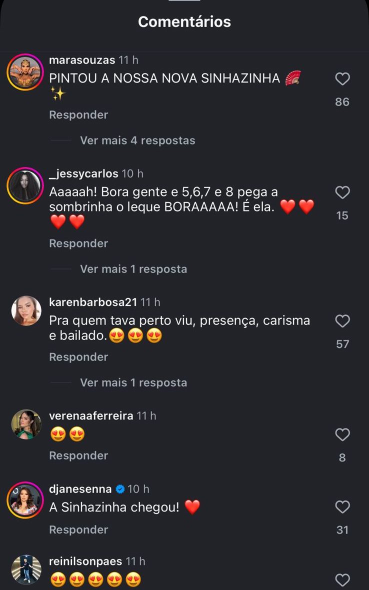 Na sexta (26/12), a bailarina Marcela Lobo particiou de ensaio de pré-Réveillon do Boi Garantido. Quando o vídeo começou a circular nas redes, o nome dela passou a ganhar força para ser apontada como a próxima Sinhazinha da Fazenda do boi vermelho.