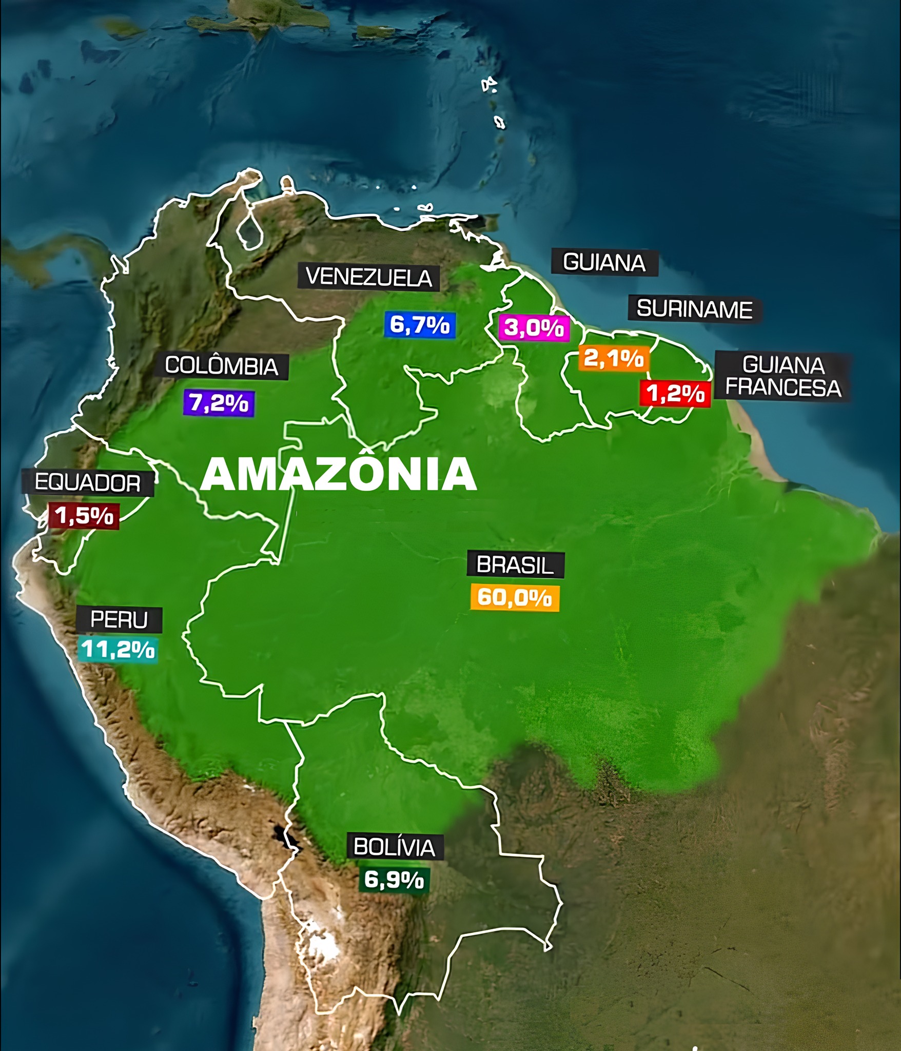 A Amazônia se espalha por nove países: Bolívia, Brasil, Colômbia, Equador, Guiana Francesa, Paraguai, Peru, Suriname e Venezuela. Só no território brasileiro, ocupa nove estados, cobrindo quase metade do país. É o maior bioma terrestre do planeta, com um ecossistema tão vasto que influencia o clima global.