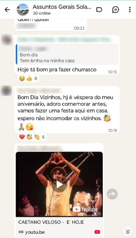 No entanto, no decorrer das horas, o clima mudou e o grupo de WhatsApp do condomínio começou a receber mensagens bem-humoradas.