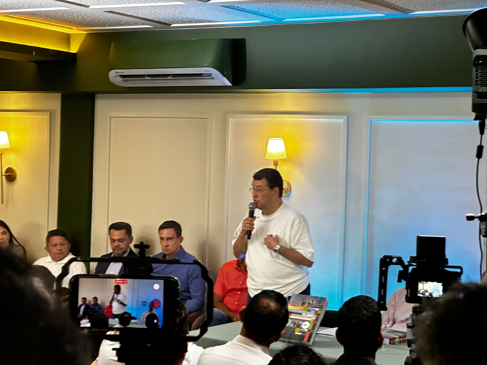 Braga também levou consigo uma série de aliados, que também devem embarcar na candidatura de Omar ao Palácio da Compensa. A presença do senador neste evento também contrasta com a ausência dele no lançamento da pré-candidatura de David Almeida, há duas semanas.