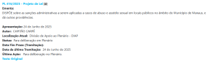 Outra preocupação bem presente na atuação legislativa e parlamentar do vereador Capitão Carpê diz respeito à proteção às vítimas e ao combate aos abusos sexuais em áreas de Manaus.