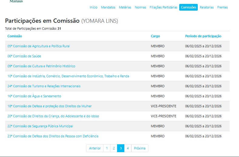 Yomara Lins (Podemos) está em seu segundo mandato como vereadora na Câmara Municipal de Manaus (CMM). Ela é a segunda mulher na Casa Legislativa, com ela, apenas Thaysa Lippy (PRD) compõe a ala feminina na CMM entre os 41 vereadores atualmente em exercício.