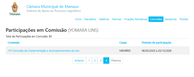 Ao longo da 19ª Legislatura, Yomara Lins tem ampliado sua participação em espaços estratégicos dentro da Casa. Em 2025, a parlamentar manteve um forte papel dentro das comissões voltadas aos direitos sociais, ocupando, entre outras funções: