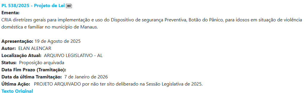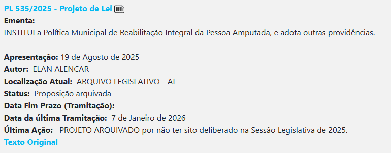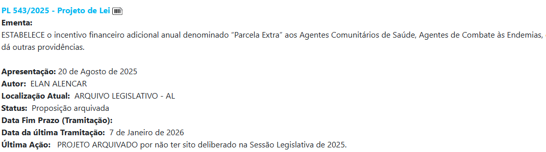 Análise de mandato: Cinco dos oito projetos de leis apresentados por Elan Alencar em 2025 foram arquivados
