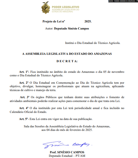 Sinésio da Silva Campos, conhecido como Sinésio Campos, é deputado estadual e cumpre seu quarto mandato na Assembleia Legislativa do Estado do Amazonas (Aleam). Nesta série de análise de mandato da Rede Onda Digital, o parlamentar se destaca pela proposição de leis voltadas à criação de dias estaduais e por declarações polêmicas envolvendo membros do Partido dos Trabalhadores (PT), do qual é presidente estadual.