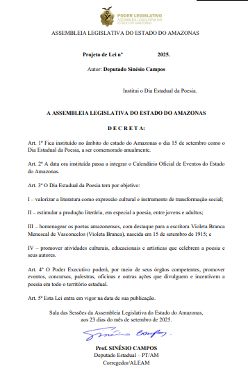 PL 849/2025 – Projeto de Lei Ordinária Etiqueta Individual: institui o Dia Estadual da Poesia.
