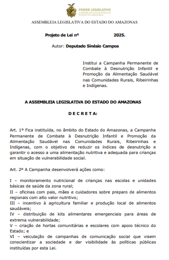 PL 633/2025 – Projeto de Lei Ordinária Etiqueta Individual: institui a Campanha Permanente de Combate à Desnutrição Infantil e Promoção da Alimentação Saudável nas Comunidades Rurais, Ribeirinhas e Indígenas.