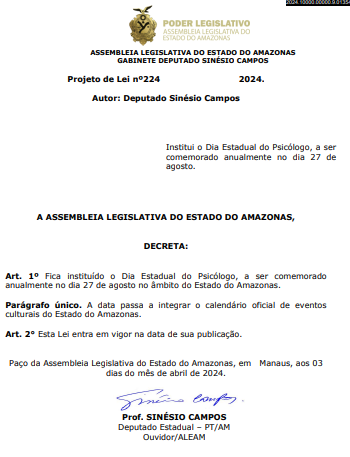 Sinésio Campos apresentou 4.319 matérias na Assembleia, como primeiro autor. Entre as proposições, destacam-se projetos ainda em tramitação neste ano: