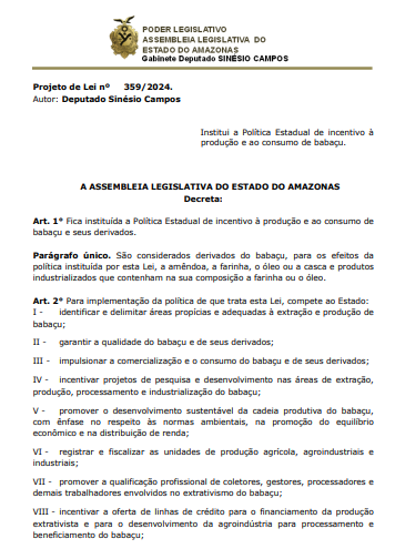 - Política Estadual de Incentivo à Produção e ao Consumo de Babaçu;
