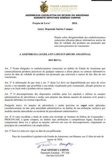 - Obrigatoriedade para estabelecimentos comerciais informarem a data de validade de produtos em promoção quando próximos do vencimento;