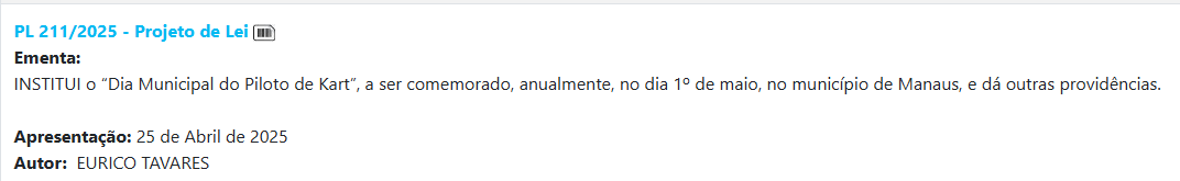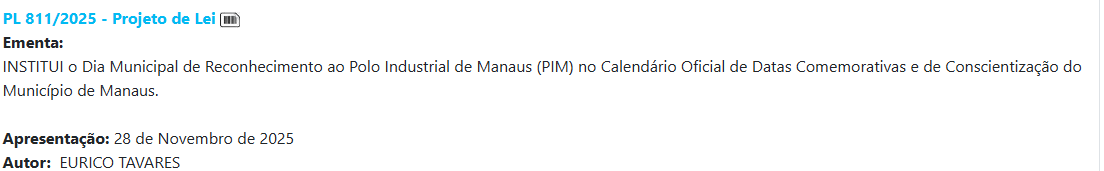 Já no terceiro e último projeto de resolução apresentado neste mandato, o PR nº 18/2025 propõe a criação da Frente Parlamentar do Empreendedorismo e Oportunidades de Manaus (FPEOM), com o objetivo de fomentar o ambiente de negócios na capital.