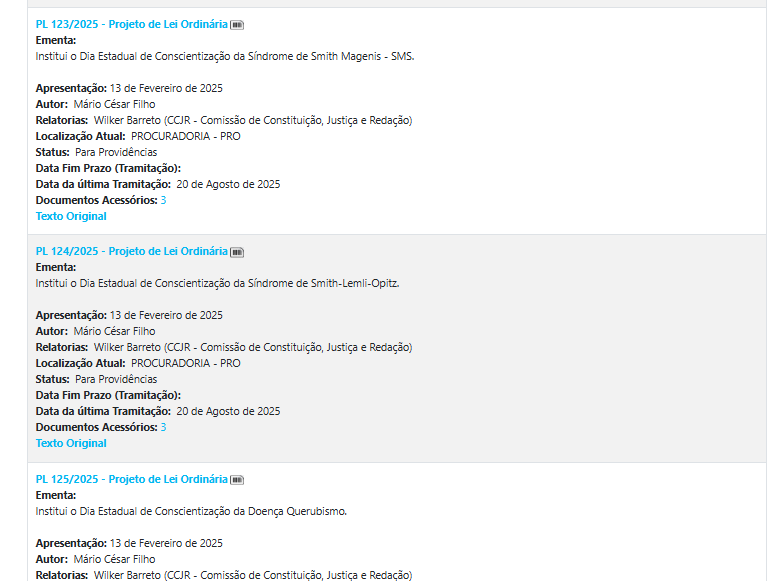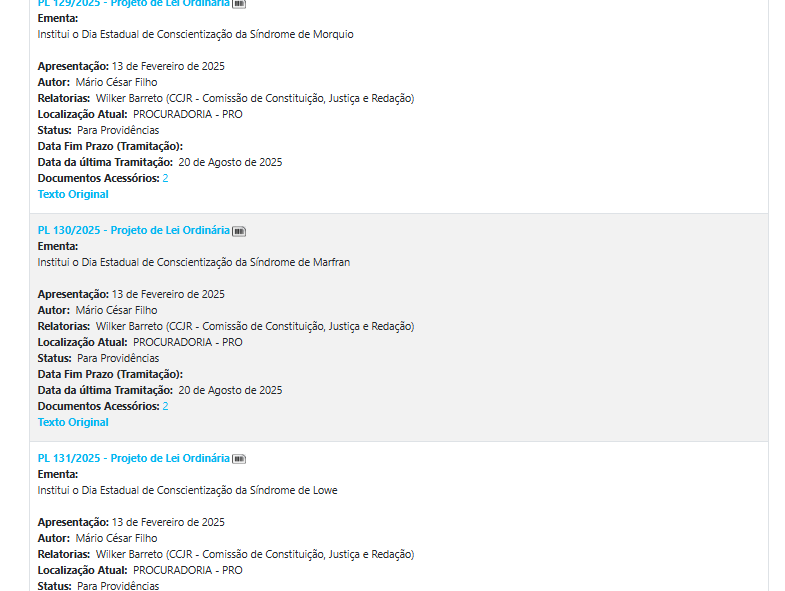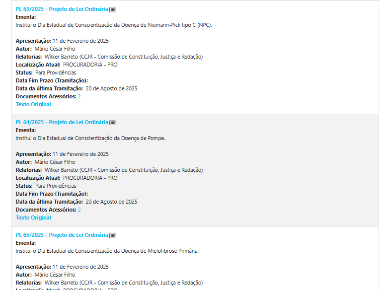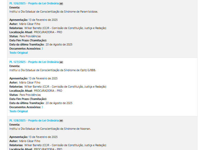 Em uma busca no SAPL, foram encontradas 48 matérias que mencionam ‘Dia Estadual’ durante o período de 2023 até atualmente.