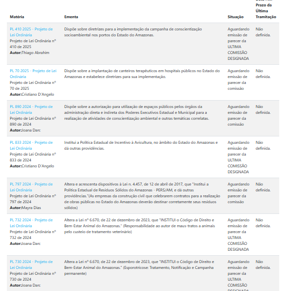 Para a reportagem, Wanderley Monteiro afirmou que a tramitação dos projetos na comissão ocorre de forma contínua, com prioridade para propostas que tenham impacto positivo na vida dos amazonenses.