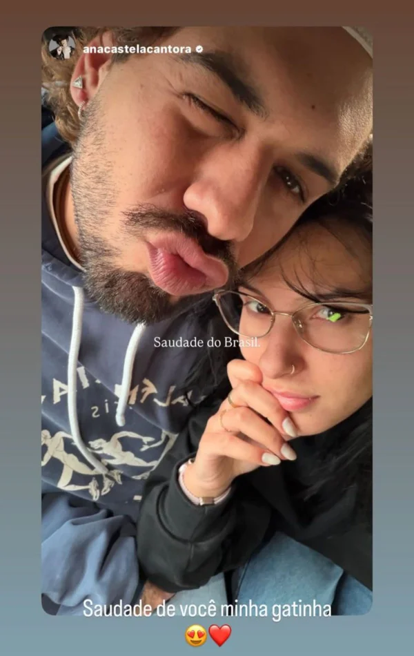 Ana Castela, de 21 anos, que está em turnê por Portugal, na Europa, surpreendeu os fãs ao postar uma foto com Zé Felipe, de 27, e afirmar ‘saudades’.