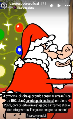 “E, apesar do inquérito constar uma denúncia contra a música “Papai Noel, Velho Batuta, sabemos que o principal alvo era impedir os shows da banda”. Diz a publicação.