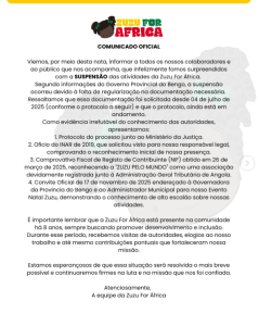 “É importante lembrar que a Zuzu For África está presente na comunidade há 8 anos, sempre buscando promover desenvolvimento e inclusão. Durante esse período, recebemos visitas de autoridades, elogios ao nosso trabalho e até mesmo contribuições pontuais que fortaleceram nossa missão”, destacou a ONG.