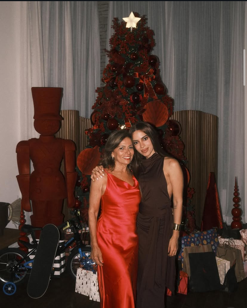 Anitta passou a véspera de Natal cercada por familiares e amigos. A reunião também celebrou o aniversário de sua mãe, Miriam Macedo.