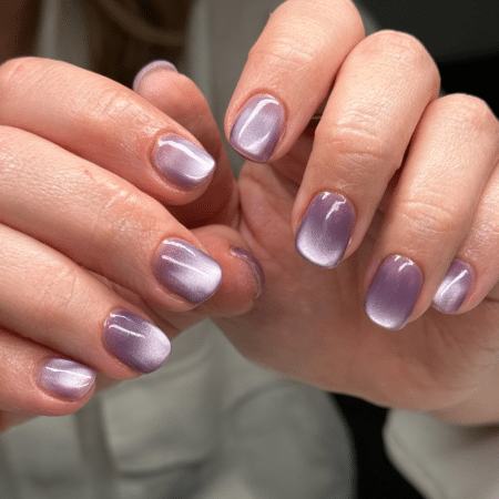 Unhas claras com brilho elegante, como bases leitosas e peroladas, também estão em alta, trazendo um visual que combina praticidade e sofisticação sem exageros.