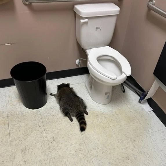 O animal foi encontrado desacordado no banheiro por um agente de controle animal do Condado de Hanover. As autoridades informaram que o guaxinim estava “extremamente embriagado”, após ingerir o conteúdo de garrafas derrubadas enquanto explorava a loja.