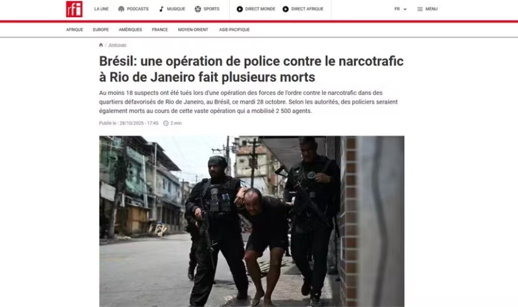 A rádio francesa RFI lembrou que operações desse tipo são comuns nas favelas do Rio, onde o narcotráfico tem forte presença. Segundo a emissora, cerca de 700 pessoas morreram em ações policiais no estado em 2024.