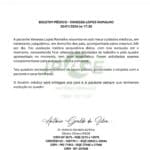 “A paciente Vanessa Lopes Ramalho encontra-se sob meus cuidados médicos, em tratamento psiquiátrico, em domicílio dos pais, acompanhada pelos mesmos 24 horas por dia. Faz avaliação médica psiquiátrica diária, com boa evolução até o momento, necessitando ficar afastada das atividades de trabalho e pelo quadro apresentado no momento, tem bom prognóstico. Foram solicitados exames complementares para avaliação clínica completa”, diz o boletim, assinado por Antônio Geraldo da Silva, diretor clínico da IPAGE (Instituto de Psiquiatria Antônio Geraldo).
