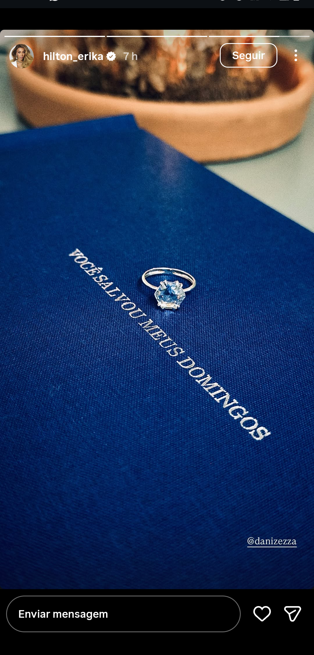 Nas redes sociais, Erika Hilton também compartilhou, por meio dos stories no Instagram, a foto do anel escolhido pelo noivo. Ao fundo, uma mensagem faz referência à canção “Me Ajude a Salvar Os Domingos”, da cantora Liniker.