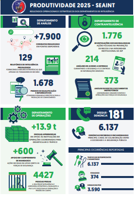 No combate ao crime organizado, o estado registrou a apreensão de mais de 13,9 toneladas de drogas e a prisão de 3.590 pessoas com apoio da inteligência policial. Ao todo, mais de 7,9 mil ações estratégicas foram realizadas ao longo de 2025.