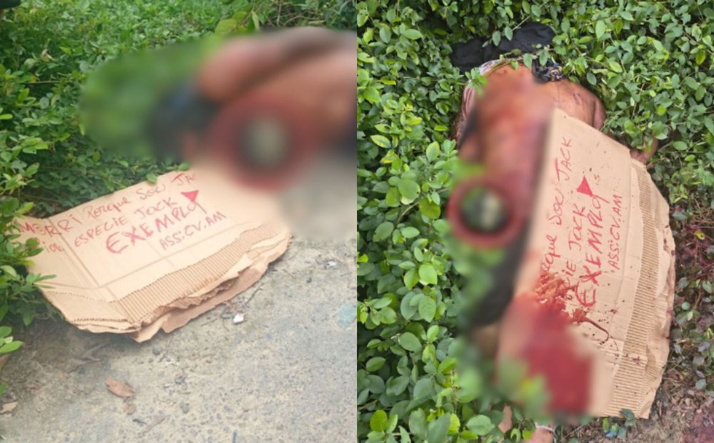 O corpo de um homem identificado como Jhon Glaucio Pimentel Marques, de 32 anos, foi encontrado no fim da tarde deste sábado (07/02) na estrada do Puraquequara, na zona leste de Manaus. Ao lado da vítima, foi deixado um cartaz com a frase: “Morri porque sou ‘Jack’ da pior espécie”.