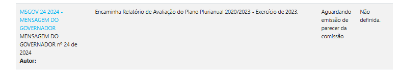 Por exemplo, entre as propostas que aguardam ser analisadas estão políticas de interesse da população e que trazem assistência a um determinado nicho, Mensagem enviada pelo Executivo Estadual e entre outras.
