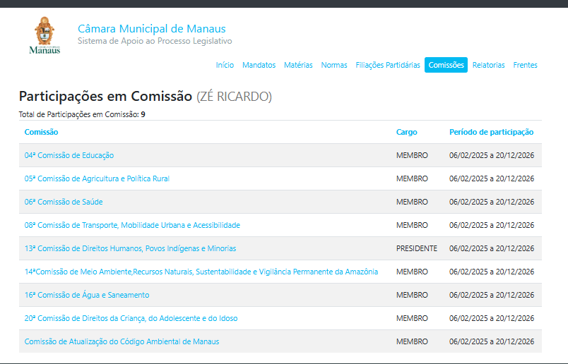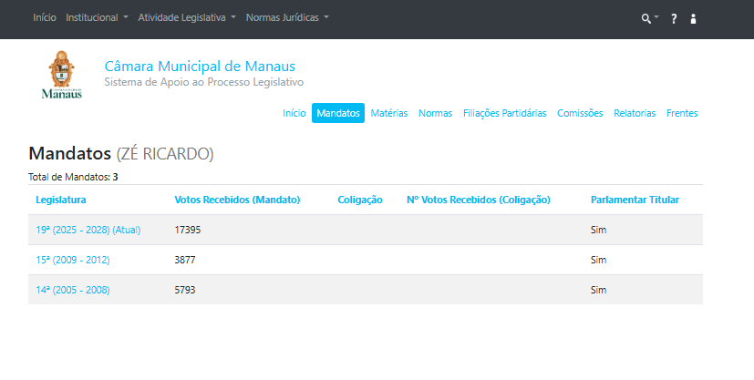 Zé Ricardo tem longa trajetória política e já foi, anteriormente, deputado estadual e federal, o que amplia sua experiência legislativa e sua presença nos debates da capital amazonense.