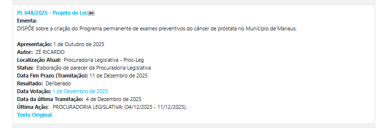 Ao longo de 2025, o parlamentar apresentou diversos projetos de lei e proposições com impacto direto nas políticas públicas do município como: