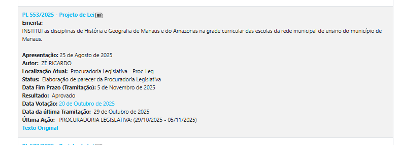- Disciplinas de História e Geografia de Manaus e do Amazonas na grade curricular das escolas da rede municipal de ensino