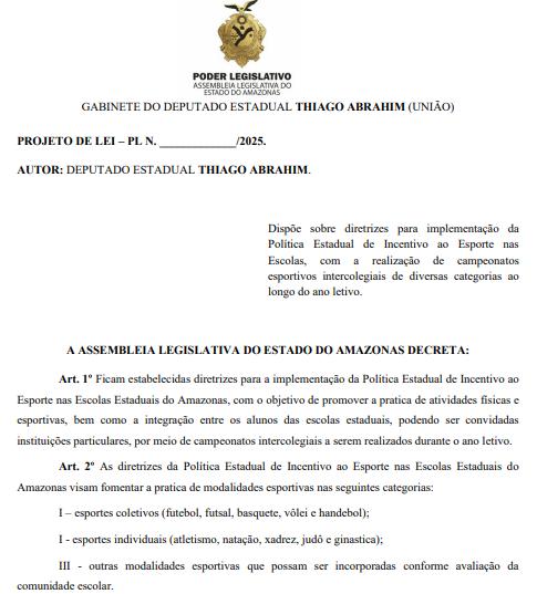 Jorge Thiago Carvalho Abrahim, mais conhecido como Thiago Abrahim (União Brasil), está em seu primeiro mandato na Assembleia Legislativa do Estado do Amazonas (Aleam), compondo 20ª Legislatura (2023 – 2027). Com 791 matérias apresentadas, das quais 673 são requerimentos, o parlamentar concentra sua atuação em demandas administrativas e solicitações formais, ritmo que marca o padrão de produção do primeiro mandato e evidencia como ele tem ocupado espaço no Legislativo.