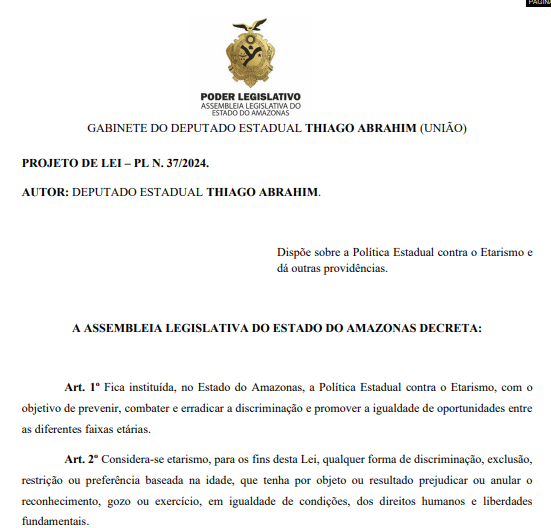 - PL 37/2024: dispõe sobre a Política Estadual contra o Etarismo e dá outras providências;