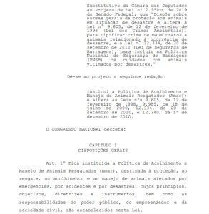 O projeto também determina transparência nas ações. Informações sobre o resgate, atendimento e destinação dos animais deverão ser registradas e divulgadas na internet, com dados como número de animais, espécie, local de resgate, estado de saúde e destino. As mortes, inclusive por eutanásia, também deverão ser contabilizadas para avaliar a gravidade dos danos e subsidiar a apuração de responsabilidades.