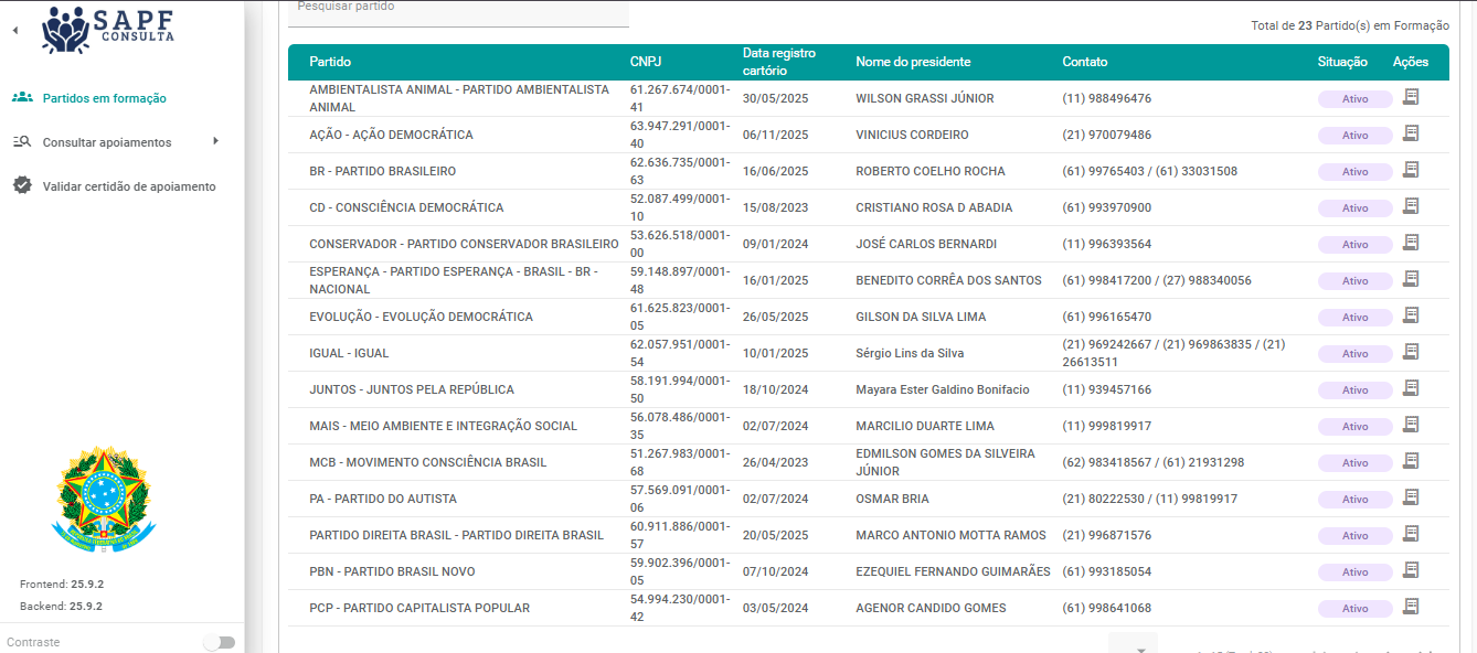 O sistema político brasileiro pode ganhar novas legendas nos próximos anos. Atualmente, 30 partidos políticos estão registrados no Tribunal Superior Eleitoral (TSE), enquanto outros 23 estão em processo de formação e tentam cumprir as exigências legais para obter registro definitivo.