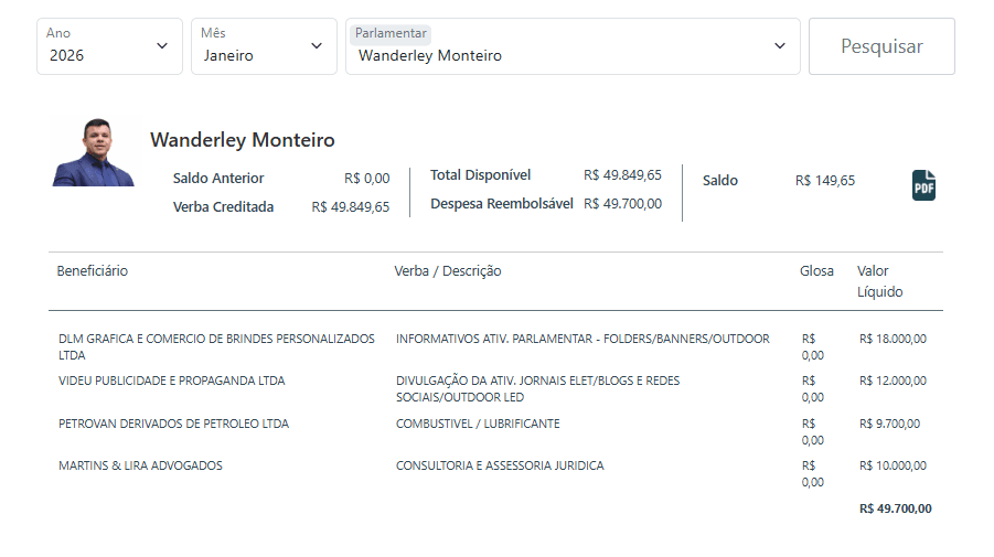 Em janeiro, os números já impressionavam. Cristiano D`Ângelo (MDB) gastou R$ 21.415,09 em materiais gráficos; Thiago Abrahim (MDB), com R$ 20 mil, e Rozenha (PSD) com R$ 22,4 mil. Wanderley Monteiro (UB) chamou atenção ao somar R$ 30 mil, incluindo gastos com divulgação digital ou informativos parlamentares.